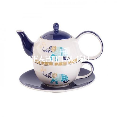 Набор для чая из костяного фарфора: кружка (объем 200 мл), чайник (объем 400 мл), блюдце.