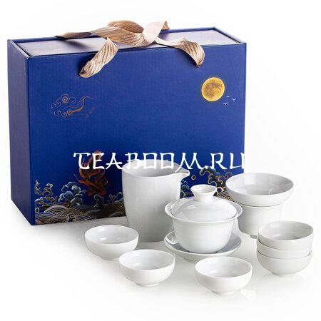 Чайный сервиз белого цвета из керамики.