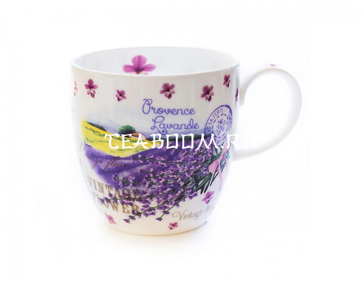 Удобная  фарфоровая кружка, выполненная в стиле "Прованс". Целые поля цветущей лаванды не оставят равнодушными.  Упакована в подарочную коробку. Объем - 350 мл. Костяной фарфор.