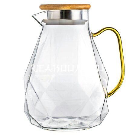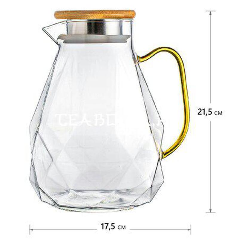 Кувшин Бриллиант станет оригинальным украшением вашего стола. Фактурное стекло выглядит эффектно, а золотой оттенок ручки придает силуэту аристократический характер. Чайник изготовлен из прочного жаропрочного стекла. Вы можете использовать данную модель как для холодных, так и для горячих напитков.