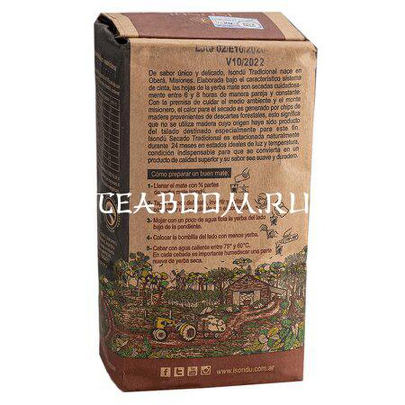 Мате Isondu Tradicional сушится в течение 8 часов, выдерживается естественным путем в течение 2-х лет. Этот сорт с гладким и стойким вкусом, лишённым кислинки.