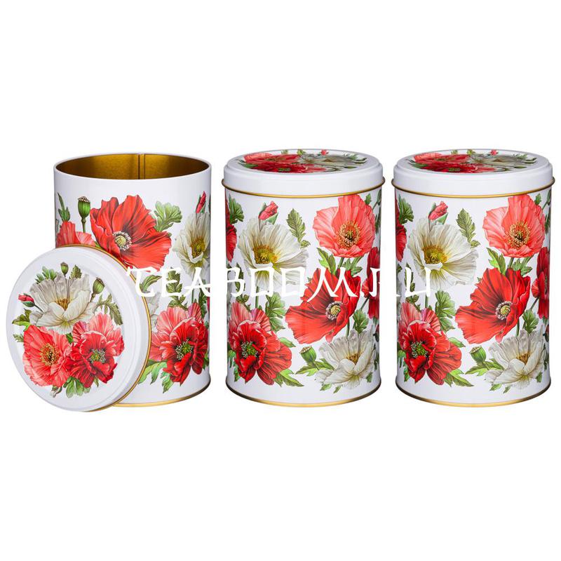 Набор AGNESS "Маки" хлебница 17,8*33,8*20 см, емкости для сыпучих 10,5*15 см/1200 мл 3 шт