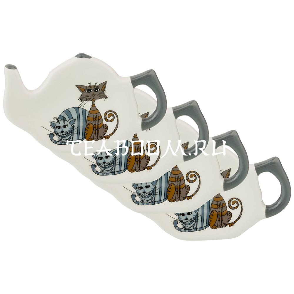 Набор из 4-х подставок под чайный пакетик коллекция "Озорные коты" 11*7*1.5 см (Lefard)