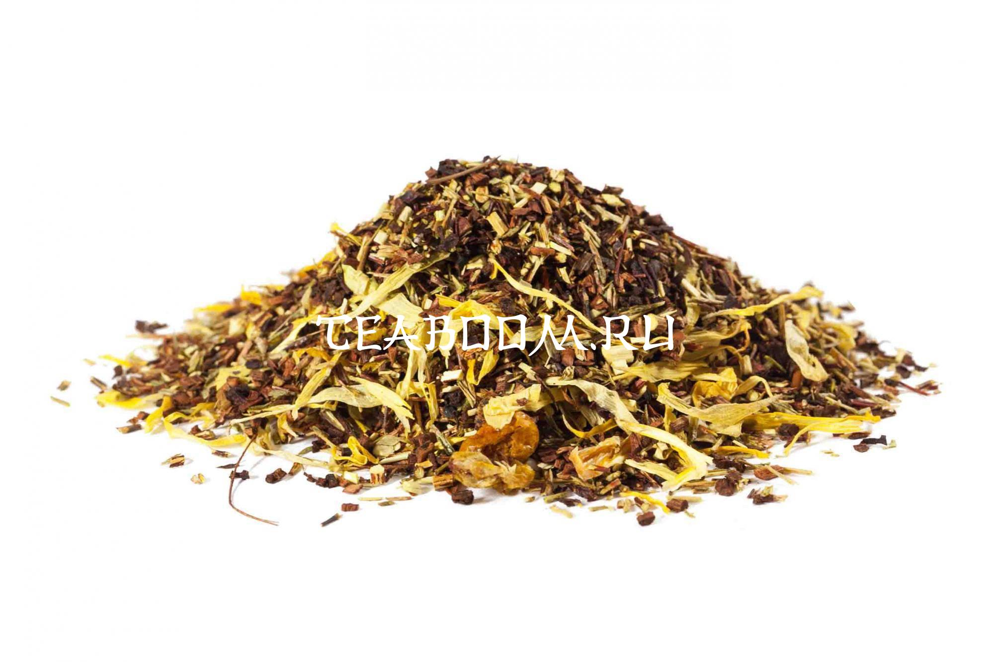 Сочетание натурального (неферментированного) зеленого ройбоса, медового ханибуша, с добавлением облепихи и лепестков календулы. Ройбос и Ханибуш - это классическая основа для натурального чайного напитка, без кофеина и практически не содержащего танин. При этом он богат высоким содержанием витаминов и антиоксидантов, что говорит о пользе этого напитка, не имеющего ограничений по потреблению.
